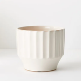 The Capra Pot in cream, the middle size among its three sizes, features a narrowing base that adds a touch of elegance to its design. Its compact yet stylish structure makes it perfect for housing petite plants or adding subtle charm to any space.