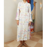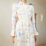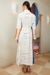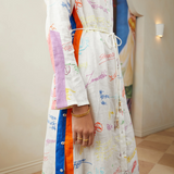 The Chiara Dress is a maxi length style cut in a cotton voile, embroidered in our Artisan's Signature embroidery - an artwork created using the hand written names of some of our Indian artisans. An homage to the people behind the garments.