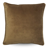 Finished in soft velvet in pine with matching piping and a natural chambray reverse.