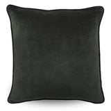 Finished in soft velvet in deep sea green with matching piping and a natural chambray reverse.