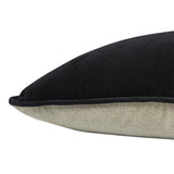 Finished in soft velvet in ink with matching piping and a natural chambray reverse.