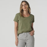 The Everyday Cotton Roll Cuff Tee in sage green is crafted from 100% pima cotton jersey for a soft, premium feel. With a wide round neckline, curved hem and rolled sleeve cuffs, it’s an easy everyday staple that works perfectly with denim, shorts or skirts.