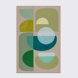 The Emerald Arch is a play with an analogous colour scheme of green and blue oil pigments on a neutral middle value Italian linen background. The geometric layers overlapping each other effect the final outcome of colour, creating a soothing luminous see through effect.