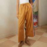 The Emmy Pant is a classic Hannah Artwear style, cut in a hand woven Buta design exclusively for Hannah Artwear on small hand worked looms by artisans in Kalkutta, India. Trimmed with selvedge stripe to reduce fabric waste.