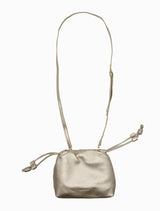 Introducing the Ernie Crossbody Bag Gold! A versatile gold drawstring pouch that offers a feminine touch while holding all your essentials. Change the shape instantly by pulling in the drawstrings to create a gathered, bucket style effect.