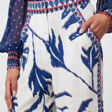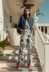 Introducing our Eudora Linen Viscose Pant in Palm Shadow, a must-have addition to your wardrobe for effortless style and comfort. These pants are crafted from a luxurious blend of linen and viscose, offering breathability and a soft touch against the skin. The high waist design provides a flattering silhouette, while the contrast print detail adds a touch of sophistication and unique charm. Whether you're heading to the office, a casual outing, or a special event, the Eudora Linen Viscose Pant in Palm Shadow is designed to keep you looking effortlessly stylish and comfortable. Pair yours with our matching Pavillion Linen blouse and your favourite heels for the perfect day to night outfit.