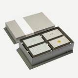 Our Health and Happiness gift pack contains 4 loose leaf teas. Inside you'll find: 1 x Skin Glow 50g, 1 x Digestive 60g, 1 x Vitality 75g and 1 x Sleep 60g loose leaf blends. The 4 teas are carefully placed inside our premium silver foiled boxes, which is perfect for a beautifully presented gift. Each of our gift packs comes with a unique band that can slide on and off, with space to write your own note on the back.