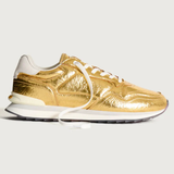 Inspired by the brilliance and essence of constellations, the ANDROMEDA sneakers shine brightly in a lustrous gold tone. These versatile sneakers offer more than just striking aesthetics; they ensure exceptional comfort with a Memory-Foam(R) insole. Don't miss the intricate details of each shoe, highlighted by a serigraphed sole that elevates your street-wear to celestial heights. Sole Height: 3 cm.