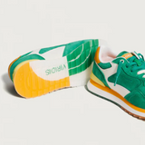 The VIRDIS WOMAN sneaker from our line celebrates athletes who go beyond achieving goals; they redefine the limits of the possible. This model encapsulates the essence of dynamism and style. Designed in suede leather and presented in a vibrant palette of deep greens with golden yellow details, it offers a design that can enhance any outfit, from the most casual denim to prints. Sole height: 3 cm.
