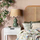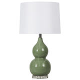 A classic two-tiered shape, this statement lamp is finished in forest green with a ridged texture. The lamp sits on an acrylic base and comes complete with a white shade.