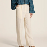 The Nevelson Pant features slouchy tailoring and a slightly tapered leg in essential white linen