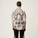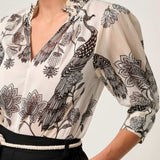 Oleander Print Shirred Collar Blouse / Imperial Stone