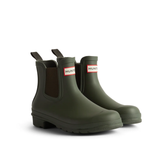 The Hunter Original Chelsea Boot has been re-engineered for an improved fit and all-day comfort. A wider ankle circumference, and an increased curve in the heel and around the Achilles tendon delivers an even more comfortable fit. The new and improved Hunter Original Chelsea Boot has an even more optimum fit to maximise all-day comfort. Ready for rain, each boot is handcrafted from natural rubber and vulcanised for superior protection. Retaining the iconic features of a traditional Chelsea, it features elasticated-gussets and has a nylon pull-tab to make stepping into the boot easy. In a classic black matte, these waterproof Chelsea's are a wet weather wardrobe essential.