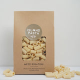 Our vegan Mezzi Rigatoni or ‘Mezze Maniche’ - short sleeve, is a shorter version of the classic Rigatoni, which is a typical type of traditional pasta from Rome. It has the characteristic ridged external surface. Well paired with our Salsa Blognese. Add a touch of cream to the Bolognese sauce and you have a Mezzi Rigatoni Pasticciati.