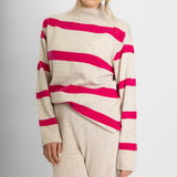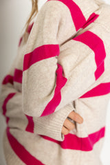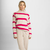 Polo Neck Jumper / Oatmeal + Bright Pink