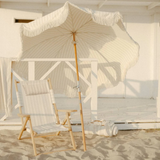 Lie under luxury with your loved ones. Our Premium Umbrella is the Ferrari of the Beach. We've been perfecting this beauty for the last 5 years & no details have been spared. Enjoy 6' of shade when open & then pack down into a matching carry bag to transport to and from the beach with ease.