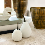 Stylized pear décor cast from a quartz sand resin, that gives a marble-like appearance. Ideal decorative for coffee table or sideboard styling.