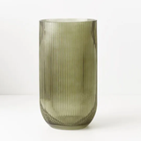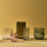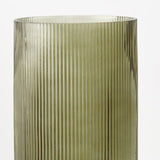 Discover our olive-coloured bell ripple vase, a charming addition to any space. Crafted with clarity and adorned with subtle ripples, it's perfect for showcasing small arrangements.