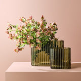 Our oval olive coloured ripple vase is the perfect vessel to style your artificial stems in any space. Select from our extensive range of artificial stems to compliment. This glass vase is handmade, due to the nature of handmade items there may be slight variations in the size, surface texture, colour, or tone of the vase.