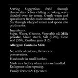 - Ingredients: Sugar, Water, Glucose, Vegetable Oil, Milk Powder, Maize Starch, Salt (0.2%), Citric Acid (330), Xanthan Gum (415)