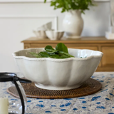 The Scilla dinnerware exudes a timeless elegance reminiscent of an Italian seaside heirloom. Each piece is hand-crafted with scalloped edges that add a touch of vintage charm and rope rim detail giving the dinnerware a distinct look that evokes the feeling of artisanal excellence passed down through generations.