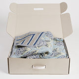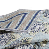 The Springtime Quilt comes in a beautiful box and matching fabric bag, perfect for storage. Featuring a stunning hydrangea floral print with a reversible striped pattern on a muted sky blue base. Available in Queen and King.