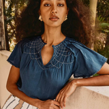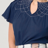 Introducing the St Lucia Cotton Self Stripe Smocked Top in Ink, a timeless addition to your wardrobe that combines delicate details with casual sophistication. Crafted from a breathable cotton self-stripe fabric, this top showcases intricate embroidery that adds a touch of elegance. The lace trim on the sleeves enhances its feminine appeal, while the keyhole opening provides a subtle, refined finish. Whether paired with tailored pants for an elevated look or worn with jeans for a laid-back vibe, the St Lucia Smocked Top offers versatile styling and effortless charm, perfect for any occasion.
