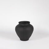 A black textured clay urn, beautiful on its own or in a group of three. Avaliable in small, large & wide.