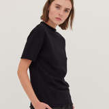 The Funnel Neck Tee is a lightweight knit, designed to be slightly fitted with a flattering funnel neck, raw hem and soft sleeves, to create an elegant silhouette.