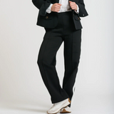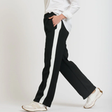 Introducing our Lola pant, an elegant and elevated interpretation of the classic 70s sport style. Crafted from luxe technical scuba fabric that will not stretch and is so comfortable to wear. Featuring a mid- rise fully elasticised waist, side pockets & flattering wide leg styling finished with centre seams and stripe at sides.