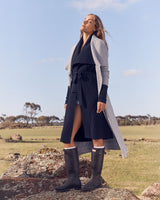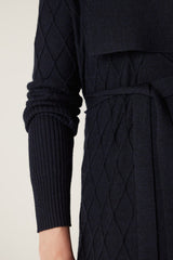 The Victoria Merino Cardigan is a versatile piece from our Heritage 365 collection. Made from 100% Australian Woolmark Certified Merino Wool, this mid length cardigan features a medium weight knit with diamond cable stitching throughout. Designed with a Milano collar neckline and deep ribbed sleeves, it includes a detachable belt.