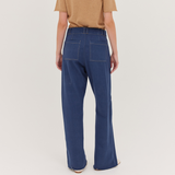 A statement jean with a comfortable high waist, relaxed wide leg and back pockets. Made from a soft hand-loomed denim that softens with wear to compliment your shape, this elevated jean option adds dimension to your wardrobe.
