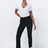 The Vacay lives up to its name; giving off relaxed-on-holidays vibes. Featuring a true black colour, a mild kick flare and a finished hem that sits just above the ankle.