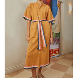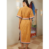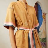 The Willow Midi Dress is a straight style cut in a hand woven Buta design exclusively for Hannah Artwear on small hand worked looms but artisans in Kalkutta, India. Trimmed with selvedge stripe to reduce fabric waste. This dress is the perfect for a beach to bar look.