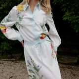 The Rafferty Skirt is a full-length design, highlighted by a bold contrast curved hem and an elasticated waist for a flattering fit. Adorned with our signature Whisper Fleur print, it effortlessly blends elegance with a modern edge.