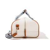- Mini duffel bag crafted with textured PU Vinyl, Pleasuretex® interior, and polyester webbing handle.