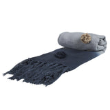 The Aegean Throw compliments the whole range with its ombre colourway, navy and natural pom poms and knotted fringe.