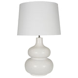 The Atlanta Lamp comes in a beautiful matte white finish and boasts a low and wide hourglass silhouette.