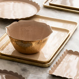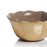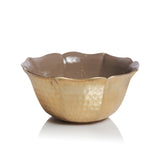 The Bazaar Lotus bowl comes painted in a two-tone intense truffle and warm gold and features a beautifully ornate, floral-inspired scalloped edge with a tangible, hammered finish.