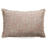 The Freshfields Garden Cushion Cover features an all-over stencil floral pattern on a rose base with a natural fringe.
