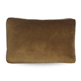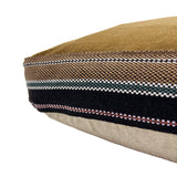 The Hayward Bowery Cushion Cover in Caramel boasts a soft velvet top and natural chambray reverse with a multi-toned striped pattern and handle.