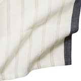 The Linnea Collection consists of 100% linen napery in tones of off-white, oat and denim in a mix of striped and plaid designs.