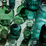 The Lune Treasure votives consists of 4 cut glass votives in stunning tonal green shades.