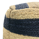 The Porta Ottoman comes handwoven in a wool & jute mix and is finished in navy blue and natural plait in a bold stripe pattern.