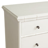 The Portico Collection captures the essence of a refined coastal style, showcasing an off-white finish, bamboo-inspired accents, and an elegant silhouette that radiates timeless appeal.