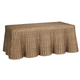 The Willow Rattan Coffee Table is accented with its ripple-shaped base and whimsical silhouette. The ripples splay out like a skirt making it wider towards the ground.