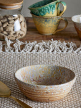 The Milani Bowl by Bloomingville is handcrafted and features a reactive glaze that creates unique variations in colors and patterns, making each bowl truly special. The glaze in brownish tones has a pearlescent finish that beautifully highlights the depth of color. This bowl is an eye-catching piece, perfect for both serving and as a decorative element in the living room or bedroom.