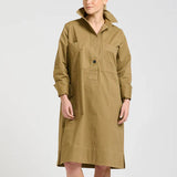 A new utilitarian popover style, crafted from a peached mid weight cotton drill, she is a true style workhorse, featuring a deep placket, flattering chest pockets, side seam pockets, optional French cuffs & a feature pleat the back. Can be worn on her own, or over with your favourite shirt or knit. A stunning Tran seasonal piece that is a true style staple.