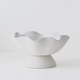 The Valmo Bowl is a beautifully sculpted piece, featuring a gently raised foot and soft scalloped edging that creates an elegant, flowing silhouette. Perfect as a statement vessel or decorative accent, its refined shape adds a touch of charm and movement to any space.