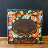 In addition to making our favorite Panettone, the Perbellini family produces a few other delicacies such as this airy apricot cake. The light sponge encloses small, tasty apricot confit drops, while the top is covered by a soft almond glaze and toasted slivered almonds. It is packaged in a delightful box with a beautiful hand drawn print of apricots, making it an ideal gift.